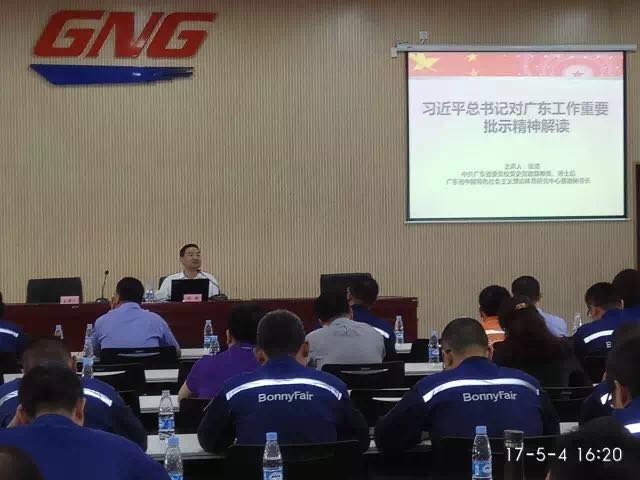 4月26日上午,公司召开党委会,传达学习了习近平总书记对广东工作的重要批示精神和省委《关于认真学习宣传贯彻习近平总书记重要批示精神的通知》。会议要求,迅速把思想和行动统一到重要批示精神上来;要以重要批示精神引领谋划各项工作,切实把学习宣传贯彻工作落实到位,认真抓好自身建设,推动工作创新发展,从而更好地服务公司发展的中心大局。各党支部结合各自特点,分阶段、分步骤及时召开党员大会认真学习习近平总书记重要批示精神,党群工作部做好监督、检查工作。