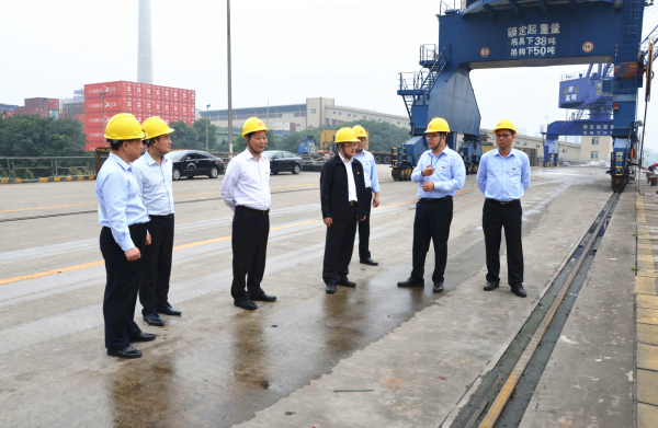 肖展欣副书记一行还实地察看了高明码头环保综合整治区域和一线生产区域,听取了高明码头环保项目的工作汇报和了解进度情况,并对高明码头总体经营业绩和绿色环保工作措施给予充分肯定。
