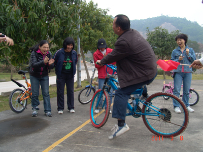图片4:中港客运联营有限公司工会在“三八妇女节”这个日子里组织了一次“春游绿道 员工同乐”活动,每人只需准备一辆自行车,男女均可报名参加。放眼望去,一条宽约3.5米的砖红色绿道在绿树和草坪丛中蜿蜒向前延伸,骑车的员工们充分感受宜居城市的景色和魅力。