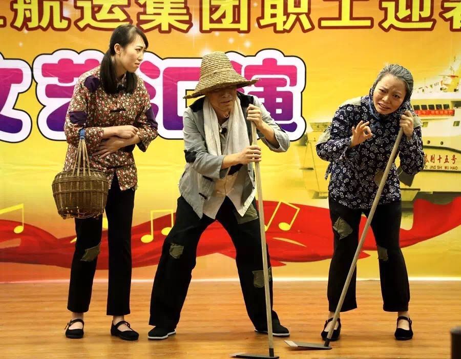 在这次文艺汇演中,公司邀请了专业评委,由公司青年自编自导自演的舞台剧《掌上航运》以高分毫无悬念地摘得一等奖,独舞《咏荷》和哑剧《较劲》获得二等奖,小品《走进新社会》、男女声合唱《好运来》和独舞《花儿为什么这样红》获得三等奖。