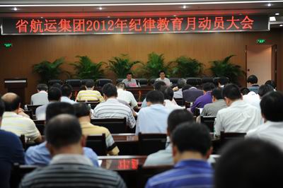 7月9日下午,航运大厦31楼礼堂座无虚席,集团2012年纪律教育学习月活动动员大会在此隆重召开,来自集团本部管理人员,二级单位班子成员,党群、人事、财务部门负责人,珠三角各港口码头的领导班子成员近160人参加了会议,集团党委书记、董事长刘伟清作了动员讲话。会议由集团党委副书记、纪委书记任哲民主持。