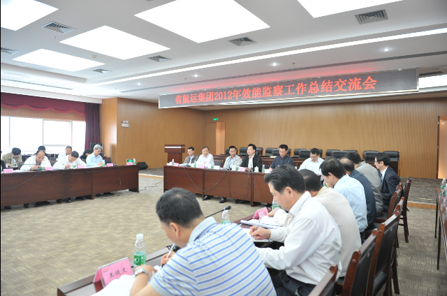 11月19日,集团在航运大厦31楼礼堂召开了2012年效能监察工作总结交流会。省国资委纪委副书记、监察专员办主任李家瑞亲临会议指导,集团主要领导,集团监事会专职监事,集团相关部门负责人,各二级公司效能监察分管领导、纪检监察员,珠三角各港口全资控股企业效能监察分管领导等近50人参加了会议,会议由集团党委副书记、纪委书记任哲民主持。