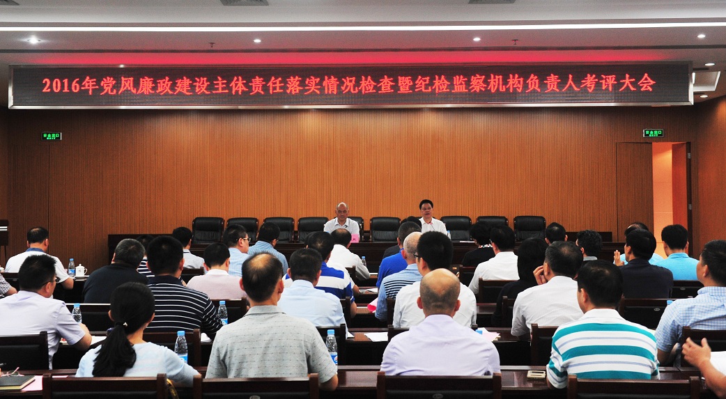5月26日下午,省纪委派驻省国资委纪检组副组长、综合室主任张铁权率检查考评组到集团,开展2016年度党风廉政建设主体责任落实情况专项检查和纪检监察机构负责人考核评价工作。集团领导班子成员、集团监事会、集团本部各部门正副部长;二级公司主要负责人、纪检监察机构负责人参加了会议。会议由集团党委书记、董事长刘伟清主持。