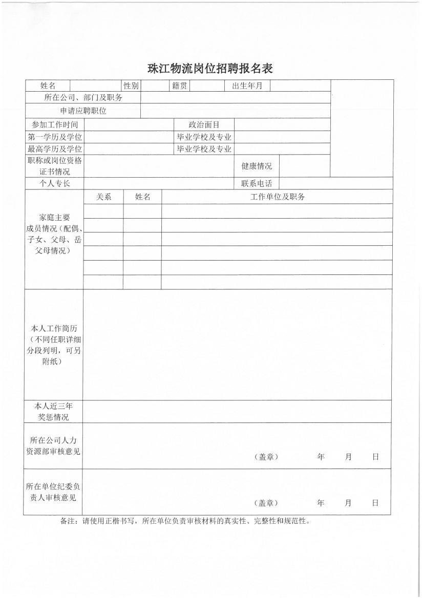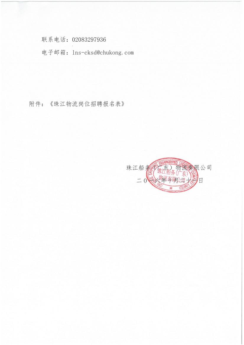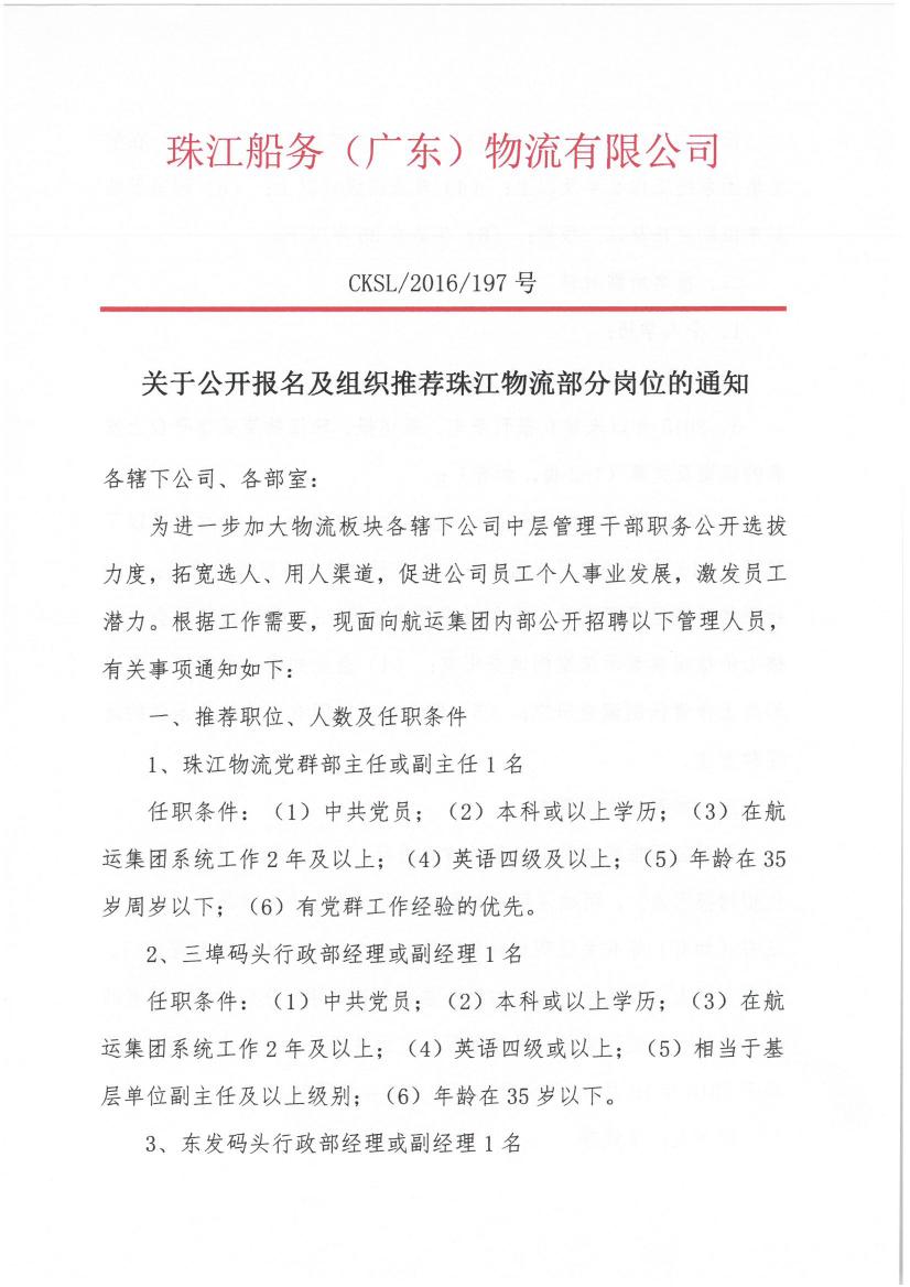 关于公开报名及组织推荐珠江物流部分岗位的通知