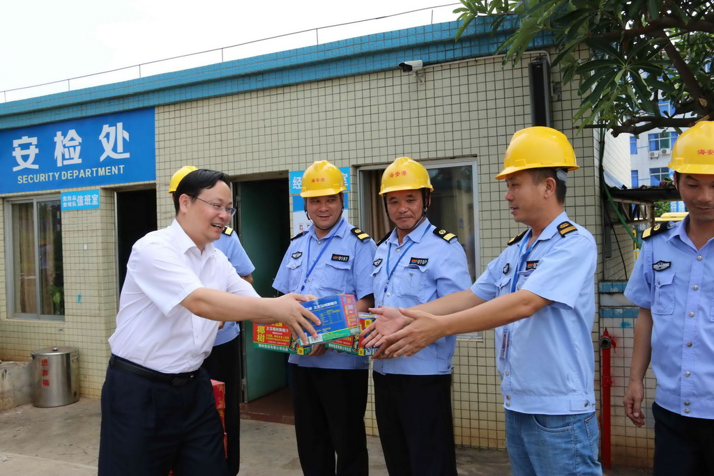 7月26日,刘广辉董事长、王放副书记、陈国书副总经理、邱才溪副总经理等领导率工会、党办、集团办、经营部等职能部门负责人分别到水巴公司各船舶探望了坚守在高温下辛勤工作的一线员工,对他们不畏酷暑、坚守岗位的敬业精神表示了敬意。刘董事长还亲自为他们送上王老吉、椰子汁等防暑降温清凉饮品,一句“同志们辛苦了”让烈日炎炎坚守岗位的员工们心里暖融融的。随后,刘董事长又率队前往港航公司对各船舶和岸基一线员工进行慰问和“送清凉”,与一线员工座谈,表示集团公司正全力以赴推进南山港建设和海峡资源整合工作,广大职工要树立信心,同心协力,以更加饱满的工作热情和务实的工作态度,积极完成各项工作任务,为集团公司做强做大作出应有的努力和贡献。