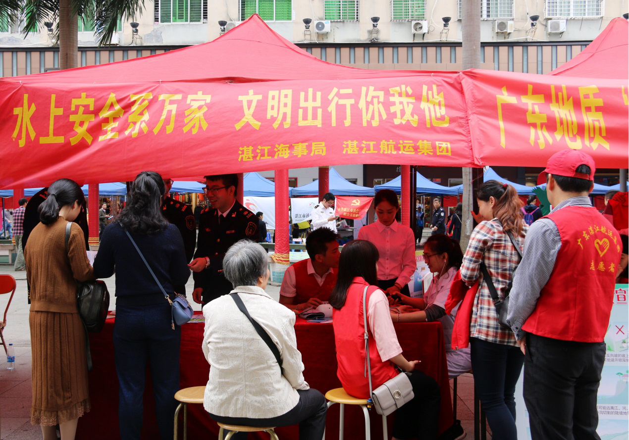 团委联合湛江海事局团委组织发动青年志愿者积极参与,结合行业特色开展学雷锋志愿服务活动,为广大市民提供水上安全知识科普、文明出行常识咨询、免费测量血压等服务,收到群众欢迎。