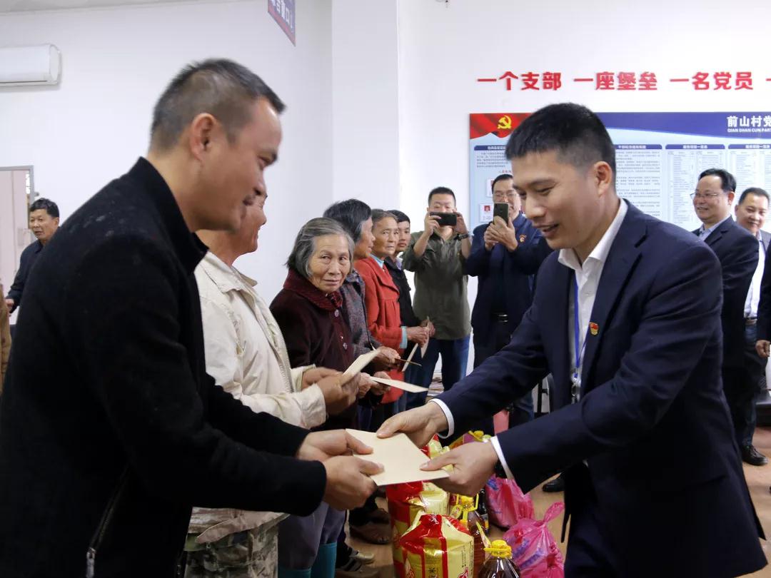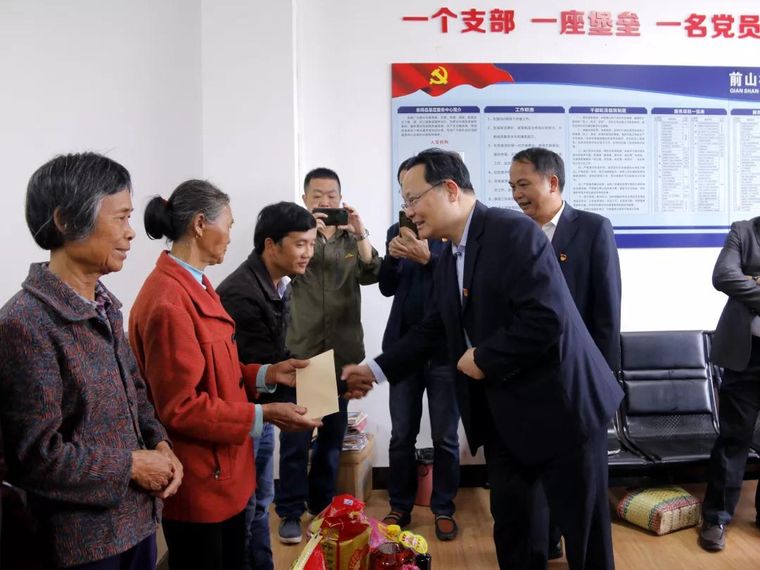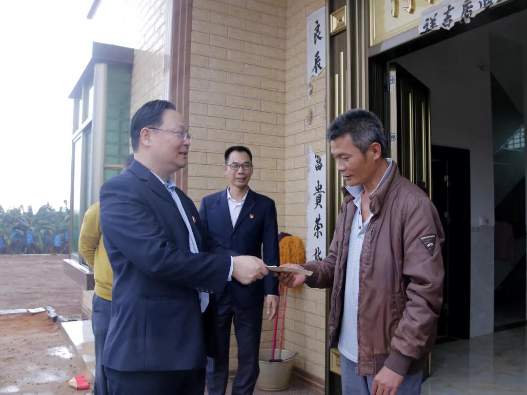 1月19日上午,在前山镇领导和村委会干部的带领下,av影片 党委书记、董事长刘广辉与党委副书记、纪委书记方汉英、党委委员、副总经理骆勇辉冒着冷雨,踩着泥泞,深入徐闻曹家村、前山村慰问重点扶贫对象,又进行个别入户走访,为他们送去慰问金和慰问品,向他们表达节日问候和祝福。