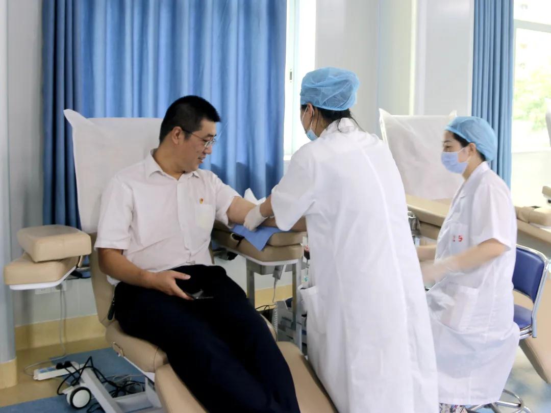 在献血活动现场,前来献血的人员在医生的指导下,有序填表、登记、测温、消毒,积极配合医护人员进行血液检验、采血,纷纷为爱伸手,用行动诠释奉献,用血液体现爱心。机关第三党支部书记付百韬已是“献血大户”,几乎每年都参加献血活动,个人献血量累计超过5000毫升。他表示,将继续发扬关心社会、关爱他人的精神,积极献血,奉献爱心,为树立社会新风尚作出党员表率。