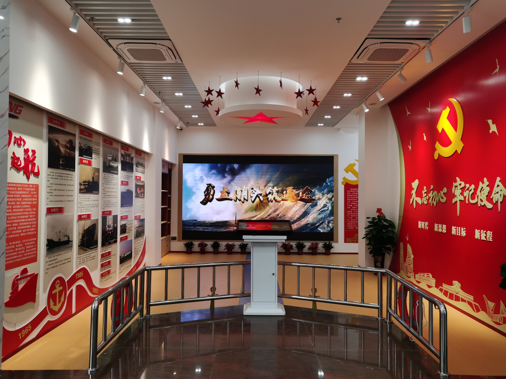 该展厅以“航”为主题,紧密融合省航运集团“与水为善、航润天下”的文化元素,设置了“初心起航”“党建领航”“文化助航”“企业荣誉”四大板块,通过LED电子屏、多媒体、宣传展板等多元素呈现,集展示、宣传、教育为一体,立体综合地展示av影片 六十多年的光辉历程、党建成果、经营亮点和av影片文化 。