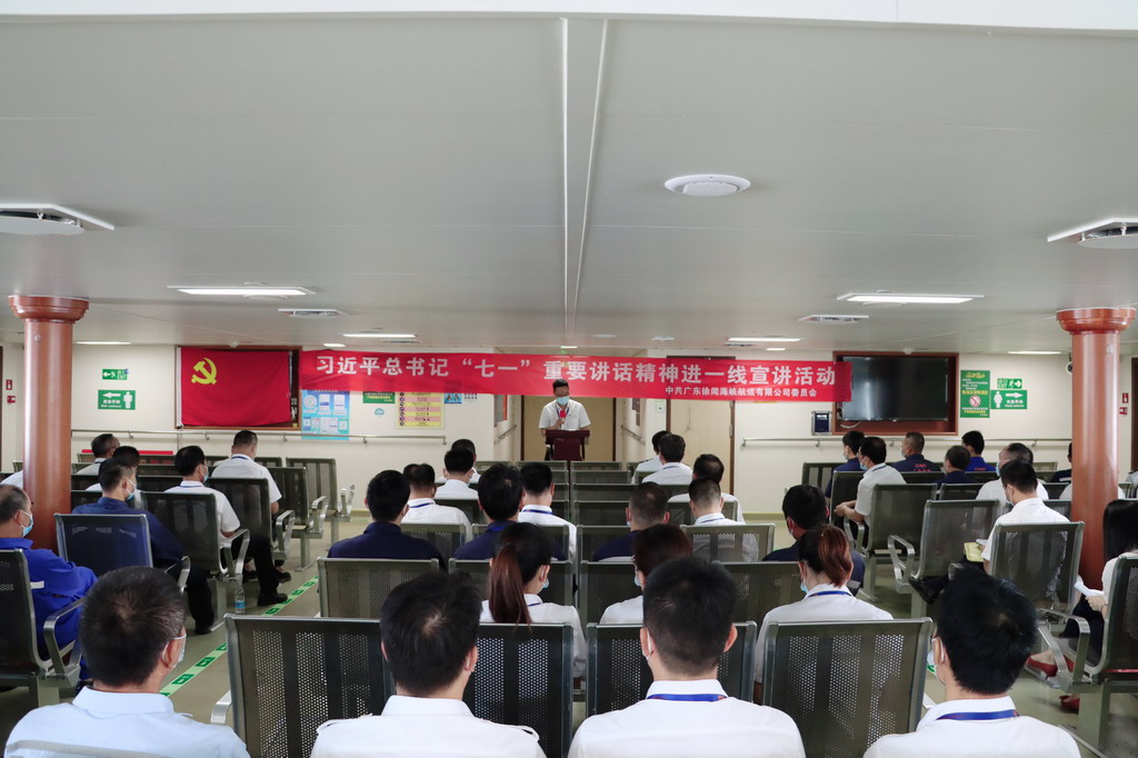 7月28日,广东海峡公司党委在“双泰36”轮海上党建阵地,举办习近平总书记“七一”重要讲话精神进一线宣讲活动。海峡公司党委书记、董事长余权新以《永葆初心本色 勇担历史使命》为题,给一线党员讲专题党课。