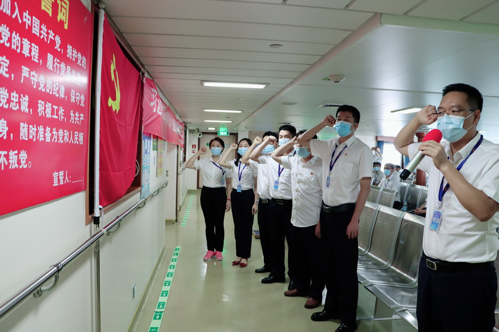 随后,在简短而庄重的入党宣誓仪式中,余权新带领海峡公司6名预备党员面对鲜红的党旗庄严许下承诺。