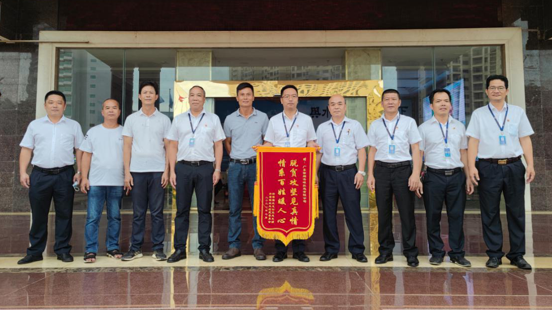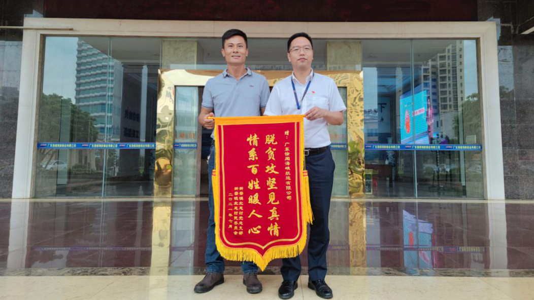 8月5日,av影片 旗下广东海峡公司收到徐闻县新寮镇北尾村党支部书记邱之能送来的感谢锦旗。公司党委书记、董事长余权新代表公司党委接受锦旗。