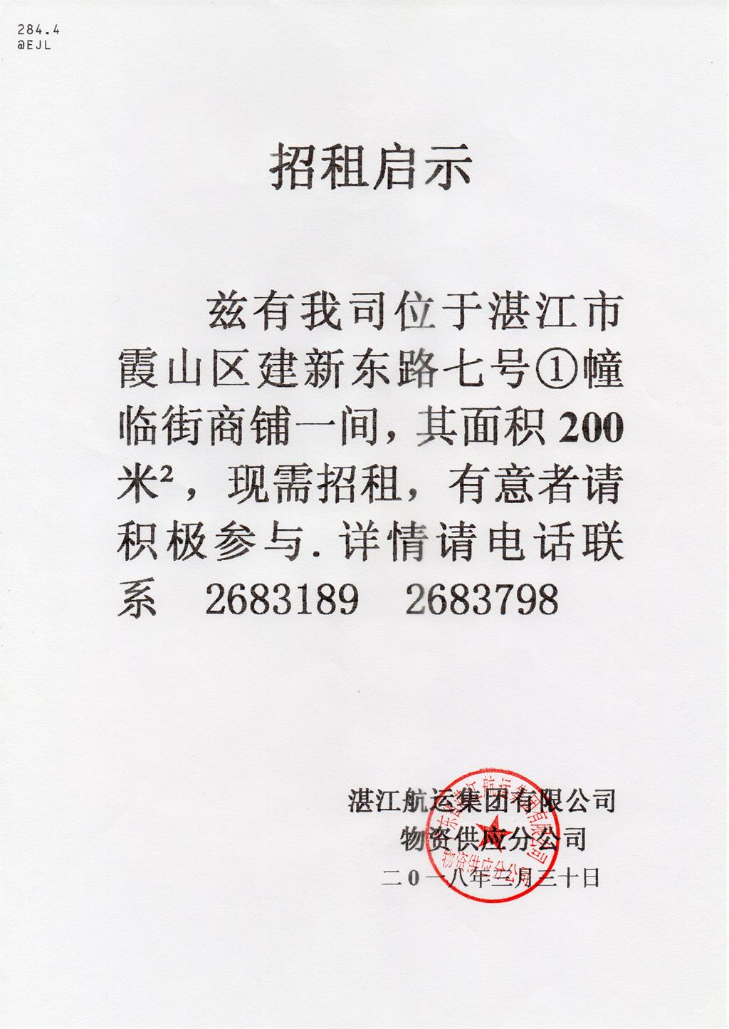 招租启示(200平方)