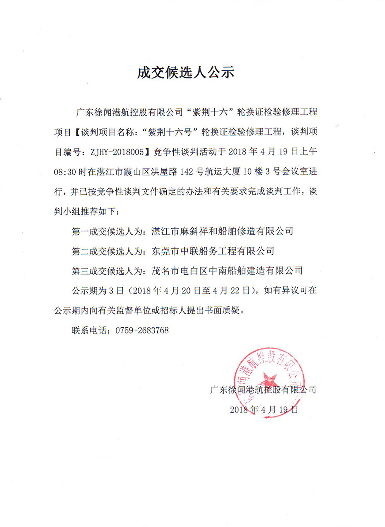 紫荆十六修理工程成交候选人公示