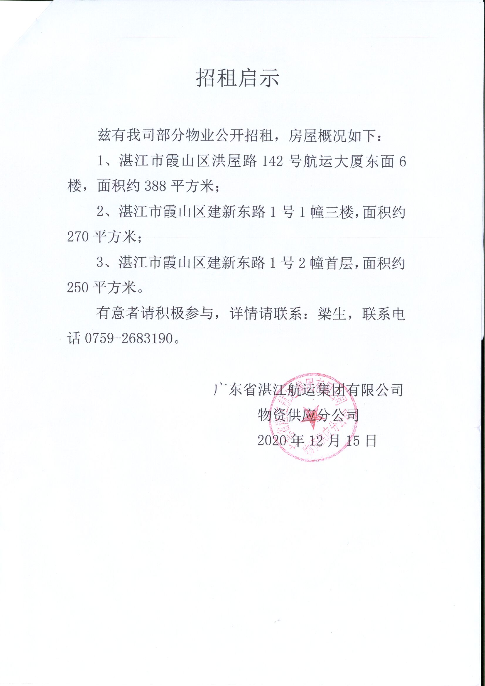 招租启示(2020年12月15日)