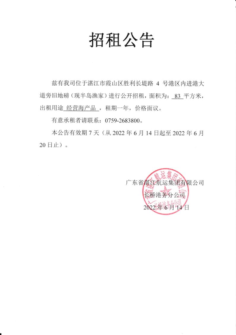 长桥港招租公告