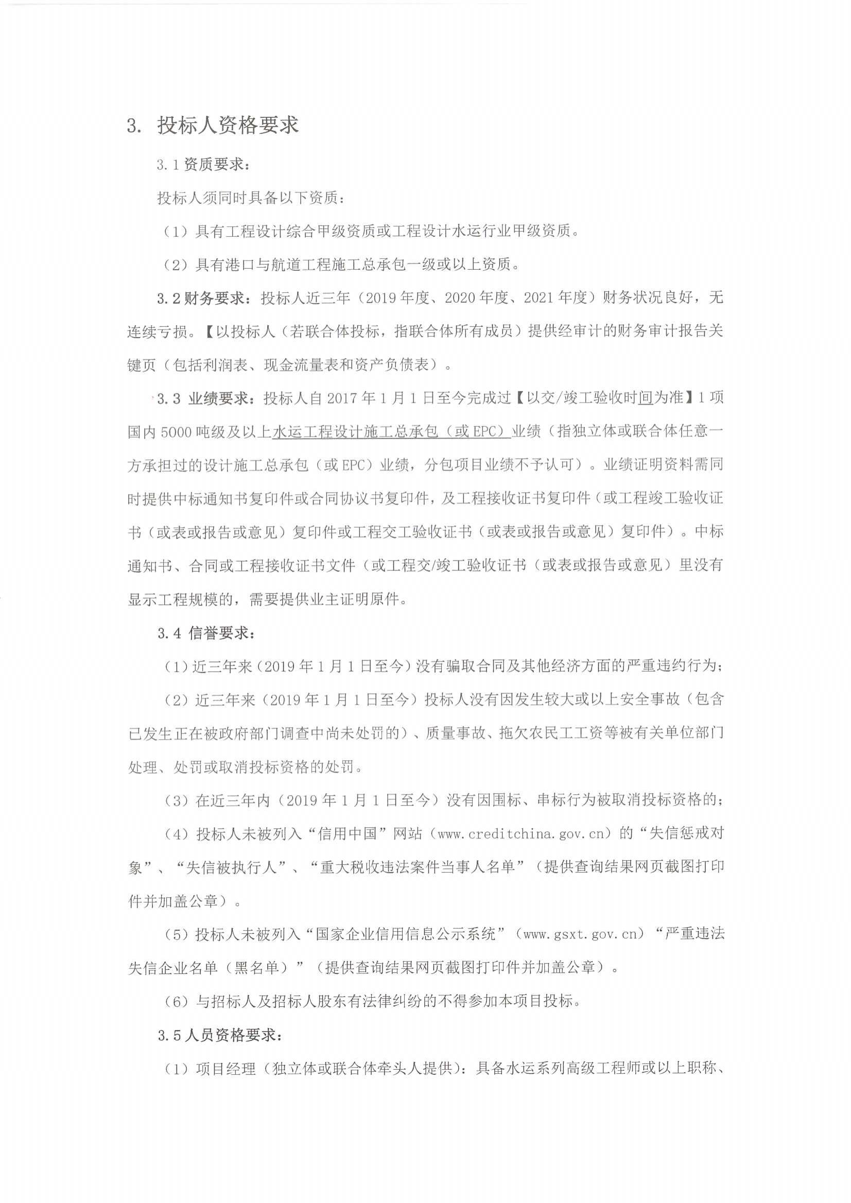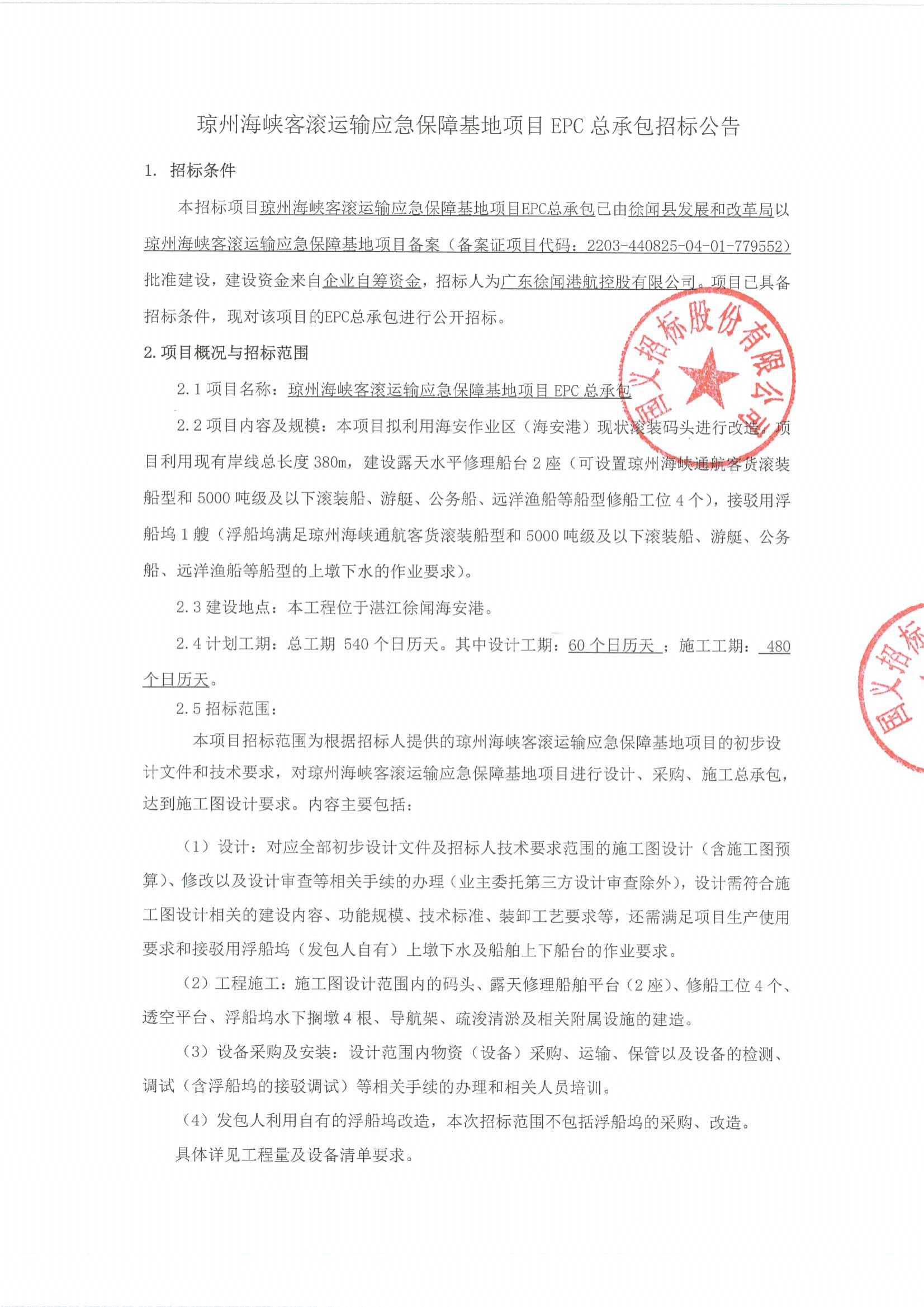 琼州海峡客滚运输应急保障基地项目EPC总承包招标公告