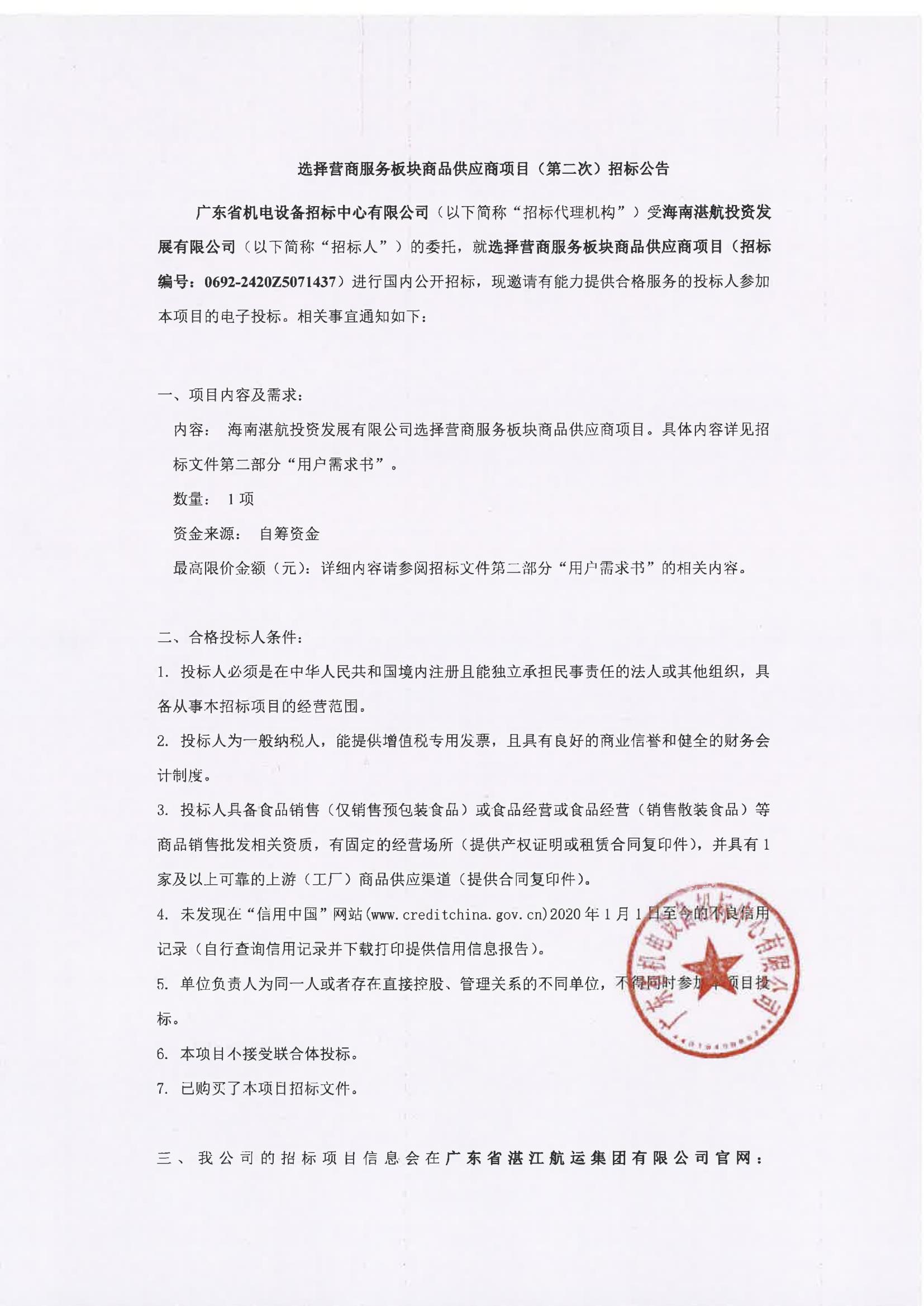 招标公告(海投公司选择营商服务板块商品供应商 第二次)