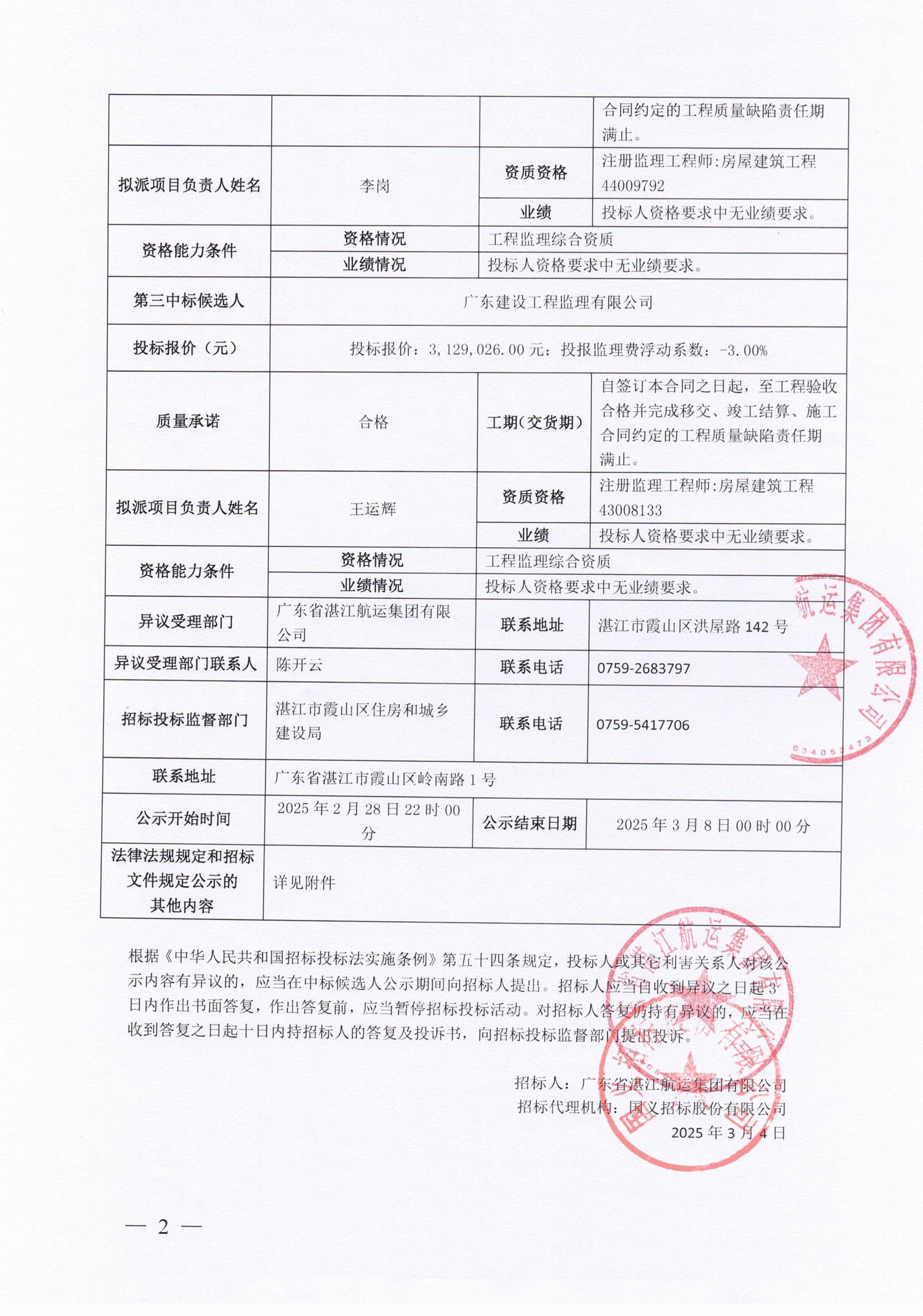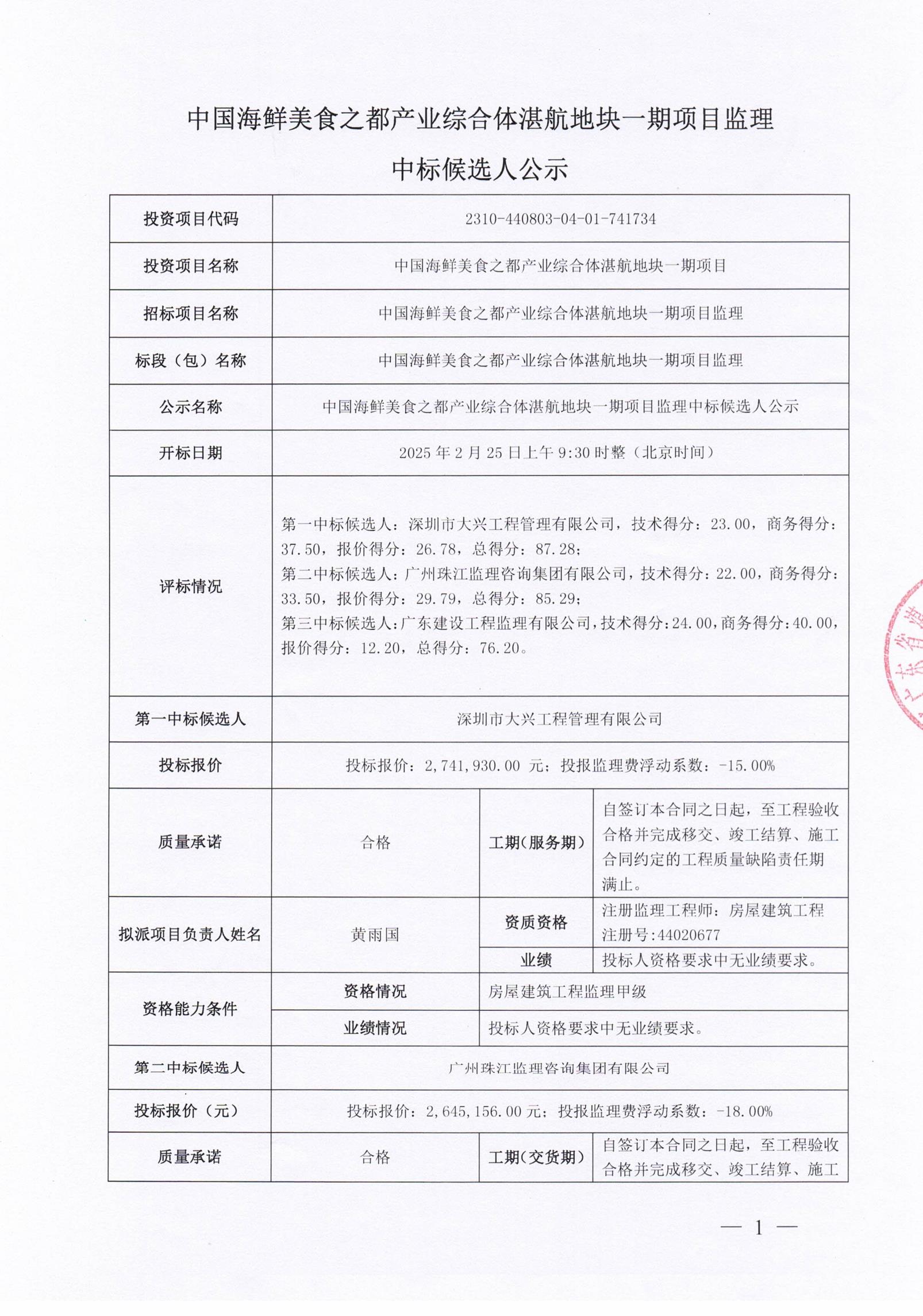 中国海鲜美食之都产业综合体湛航地块一期项目监理中标候选人公示