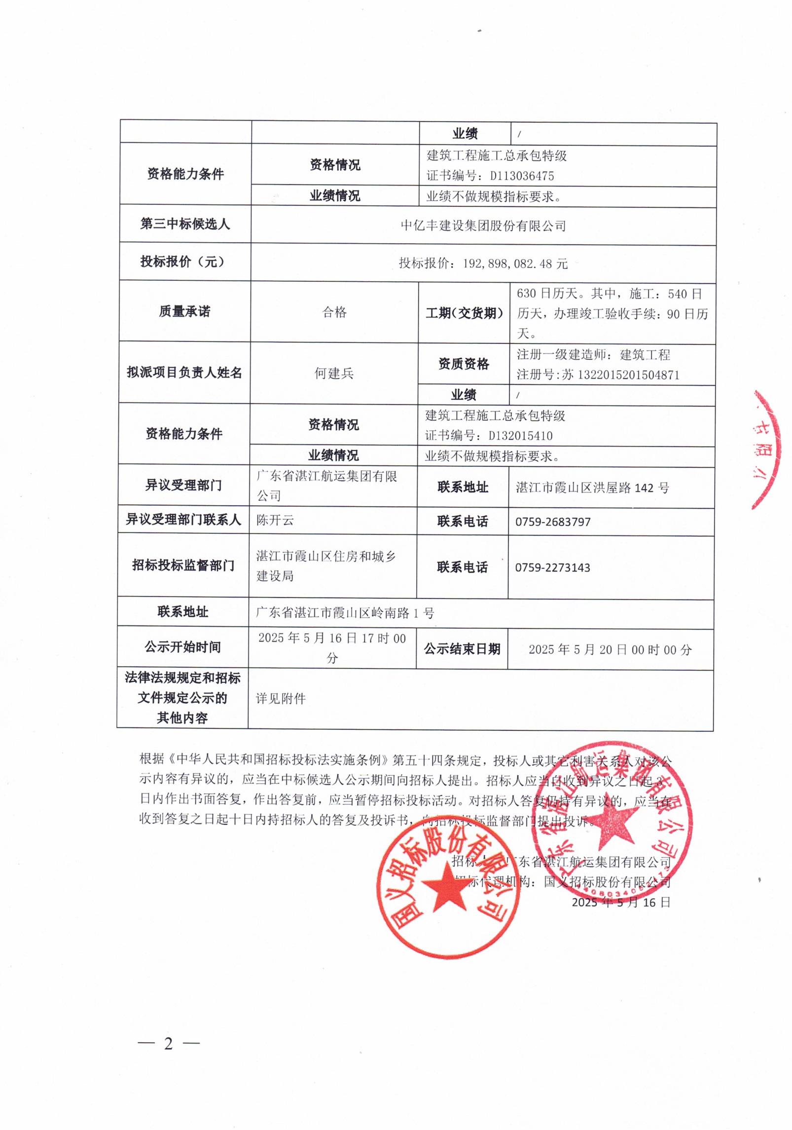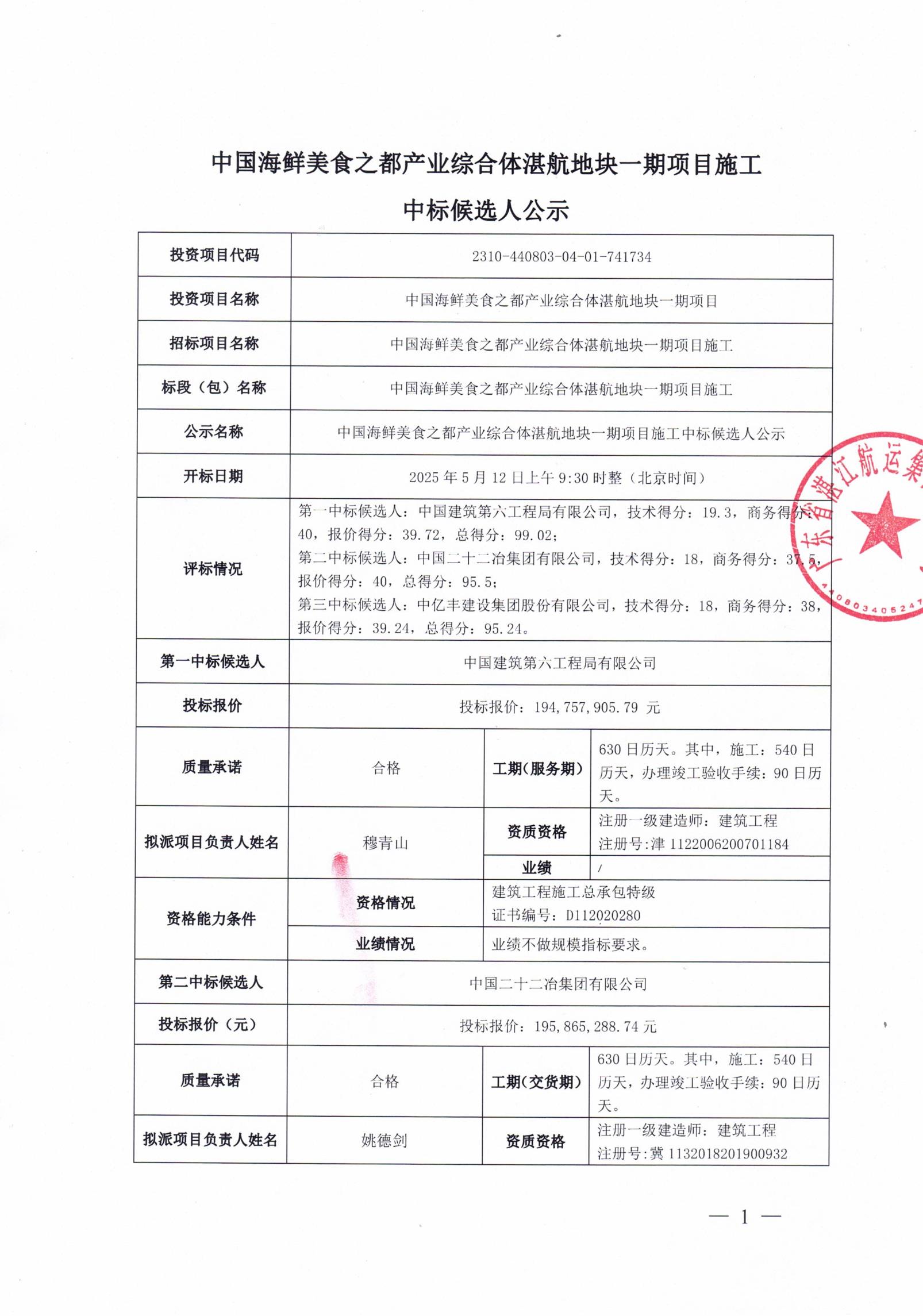 中国海鲜美食之都产业综合体湛航地块一期项目施工中标候选人公示