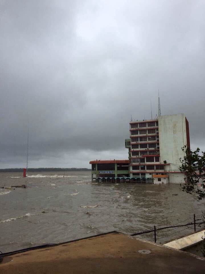 16日上午,台风“海鸥”不断逼近,风力和雨势也不断加强。中午11时许,狂风暴雨,又正值天文海潮,两者叠加形成风暴潮,海浪乘着大风涌上码头前沿。