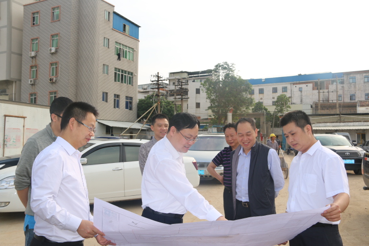 图为刘广辉董事长向黄敦新副主任(右二)一行汇报水上运动中心项目建设情况