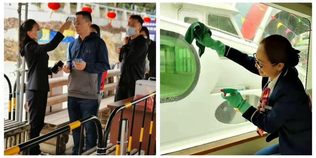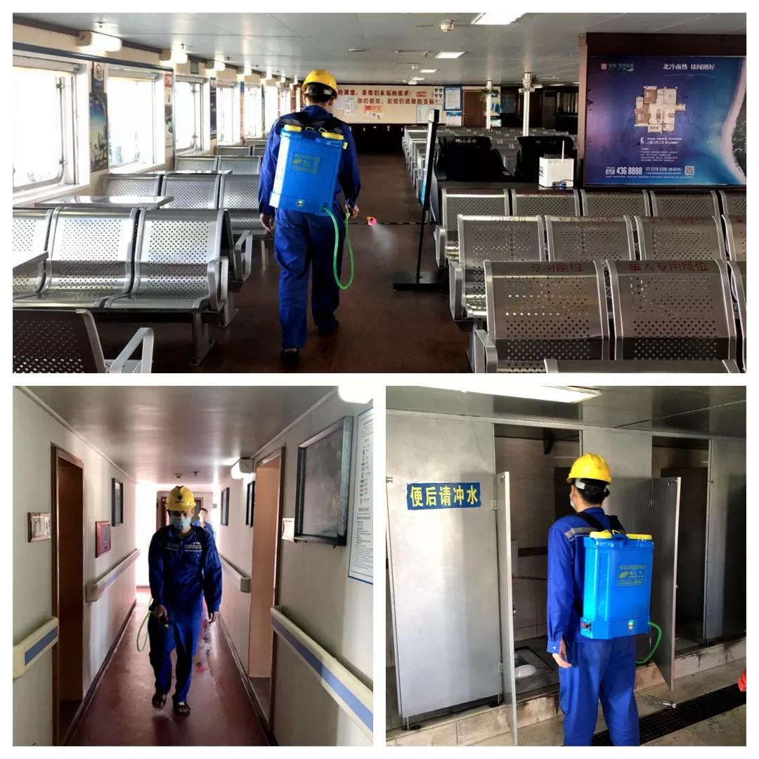 春运繁忙又遇疫情来袭,面对暴增客流和新冠肺炎疫情的双重夹击,徐闻港航公司、广东双泰集团、徐闻海运公司、海安港、海安新港、水上巴士公司、红嘴鸥游船公司多措并举,联防联动,加强港口和船舶通风透气,对港口客运站、人群密集场所、卫生间定期进行清洁消毒,对船舶客舱、船员休息舱、卫生间每航次消毒一次,为员工配备医用防护口罩、必需药品和消毒液,配发体温探测仪,对每一位过海旅客进行体温检测,对发烧等疑似病人逐一登记,及时上报卫健防疫部门,同时加强流行病防控教育宣传,在港口和船舶显目位置的电子屏幕滚动播放预防新冠肺炎公益宣传片。
