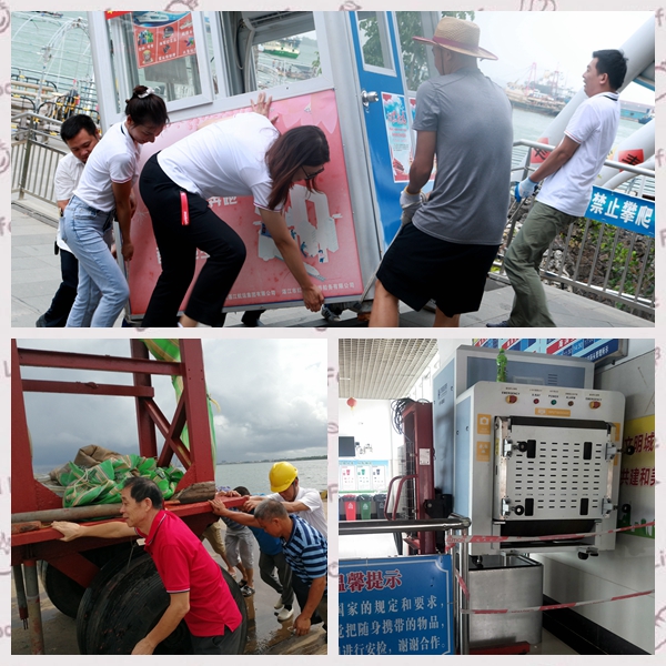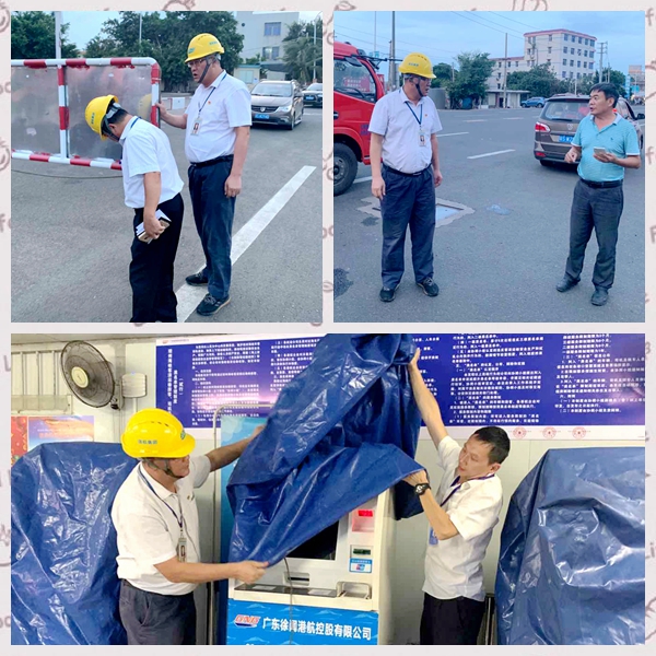 徐闻港对交通枢纽和单体门窗进行加固和沙袋对大门封堵,将场地废料清理,绑扎、固定在室外不能移动的设施设备等。