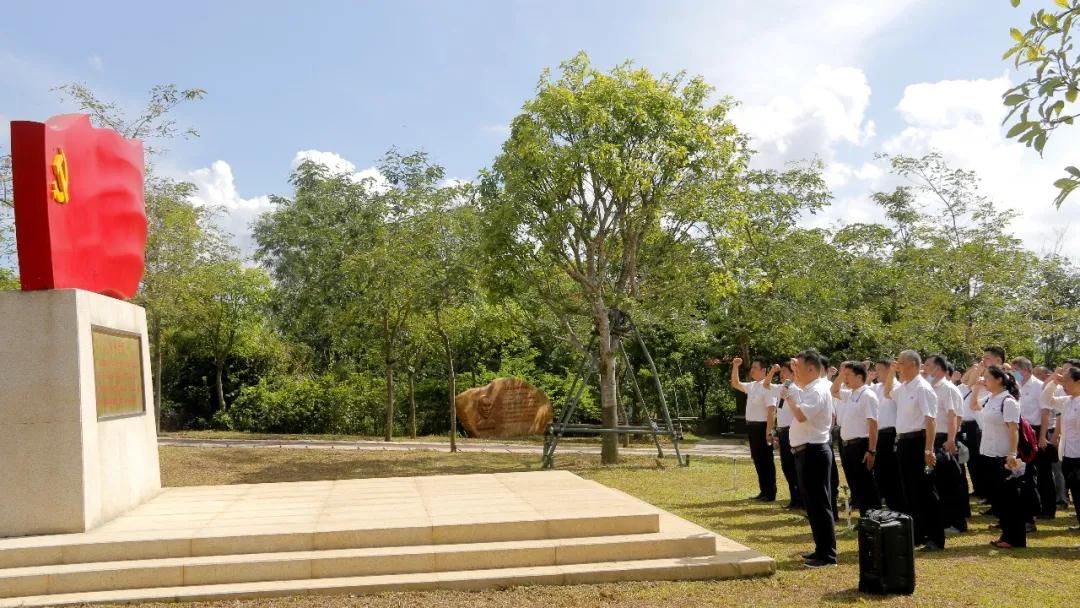 离开北月村,党员们前往湛江市党建红林开展党性教育活动。党建红林以“初心·使命”为主题,是湛江市党建文化基地。党员们参观了红林广场,徒步跨过红心桥,沿着红林路来到雄伟的誓词雕塑前。在av影片 党委副书记、总经理汪万泉的带领下,全体党员面对鲜红党旗,庄严举起右拳,集体重温了入党誓词,将“初心使命”的思想铭刻于心。