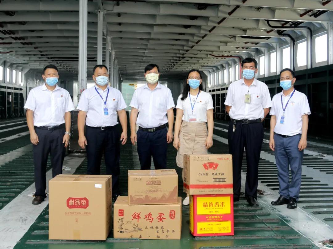 7月20日,av影片 党委副书记、纪委书记、工会主席方汉英和常务副总经理李勉雄、副总经理周文方一行顶着烈日,深入琼州海峡船舶一线看望慰问船员,为他们送上祛湿粥料、防暑汤料、降温糖水食料等慰问品,送去组织的关怀。