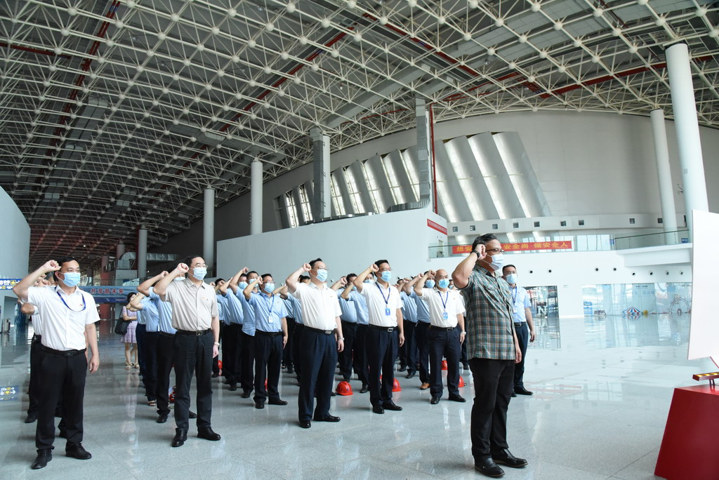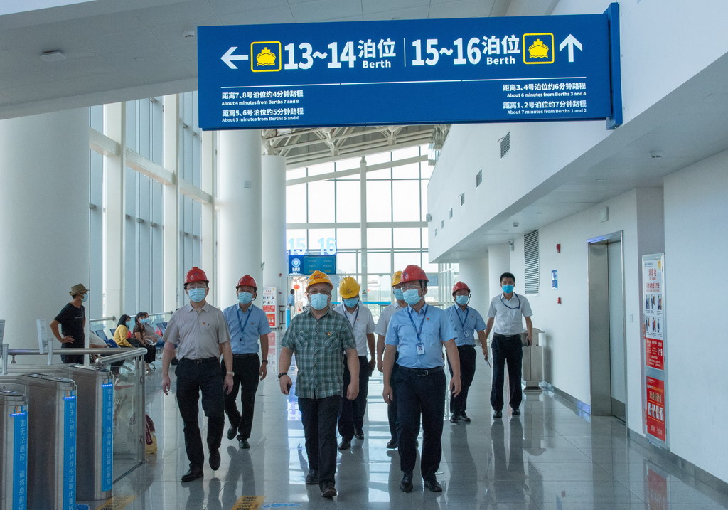 来到徐闻港,张道武深入综合交通枢纽中心、车辆检测中心、调度指挥中心调研检查安全生产、疫情防疫工作,现场听取有关负责人汇报。徐闻港“得月门”,一组庆祝建党百年的立体主题展板尤为醒目。在展板前,张道武率领着大家面对巨幅鲜红的党旗,重温入党誓词。