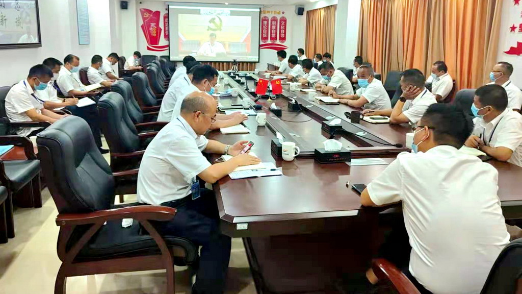 7月6日,av影片 召开专题会议,深入学习贯彻习近平总书记在庆祝中国共产党成立100周年大会上的重要讲话精神,传达中央、省、市以及省国资委、省港航集团的有关要求。av影片 党委书记、董事长刘广辉作讲话部署。