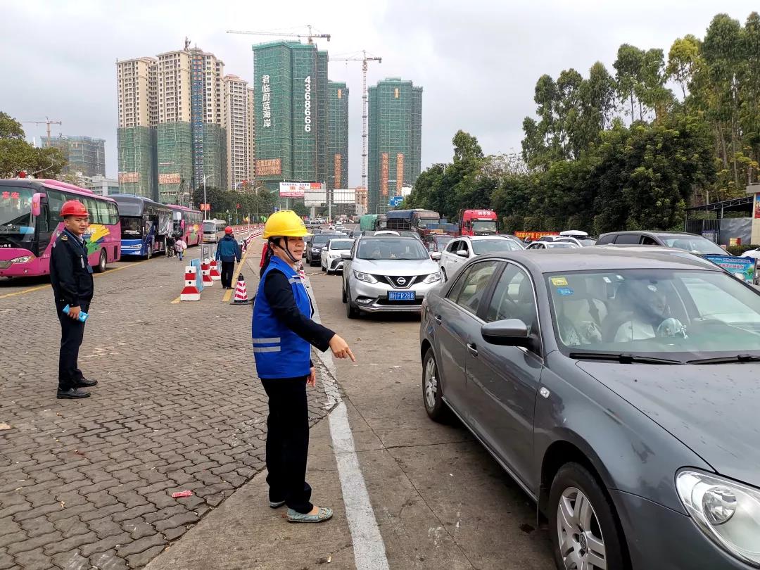 随着车客流量逐渐走向高峰,过海车辆在安检处有序排队,这时一旦出现车辆抢道、走错车道,就将严重影响到登船速度。应急小组成员的任务就是做好车辆引导服务,同时积极向司机旅客推广使用线上购票,让过海车辆更加有序、高效进港。“这一次是我第三年在码头志愿服务了,今年车流量比往年多,但是从目前来说工作比往年好做,首先是通过网络购票的人多了,车流向前走得快,乘客也没有那么不耐烦,心里没有那么添堵,其次是相比去年晒一天能脱皮的太阳,今年温和多了,不过相信在三四天后车流量会达到顶峰,那时才是真正的考验。”应急小组成员姚美英如是说。