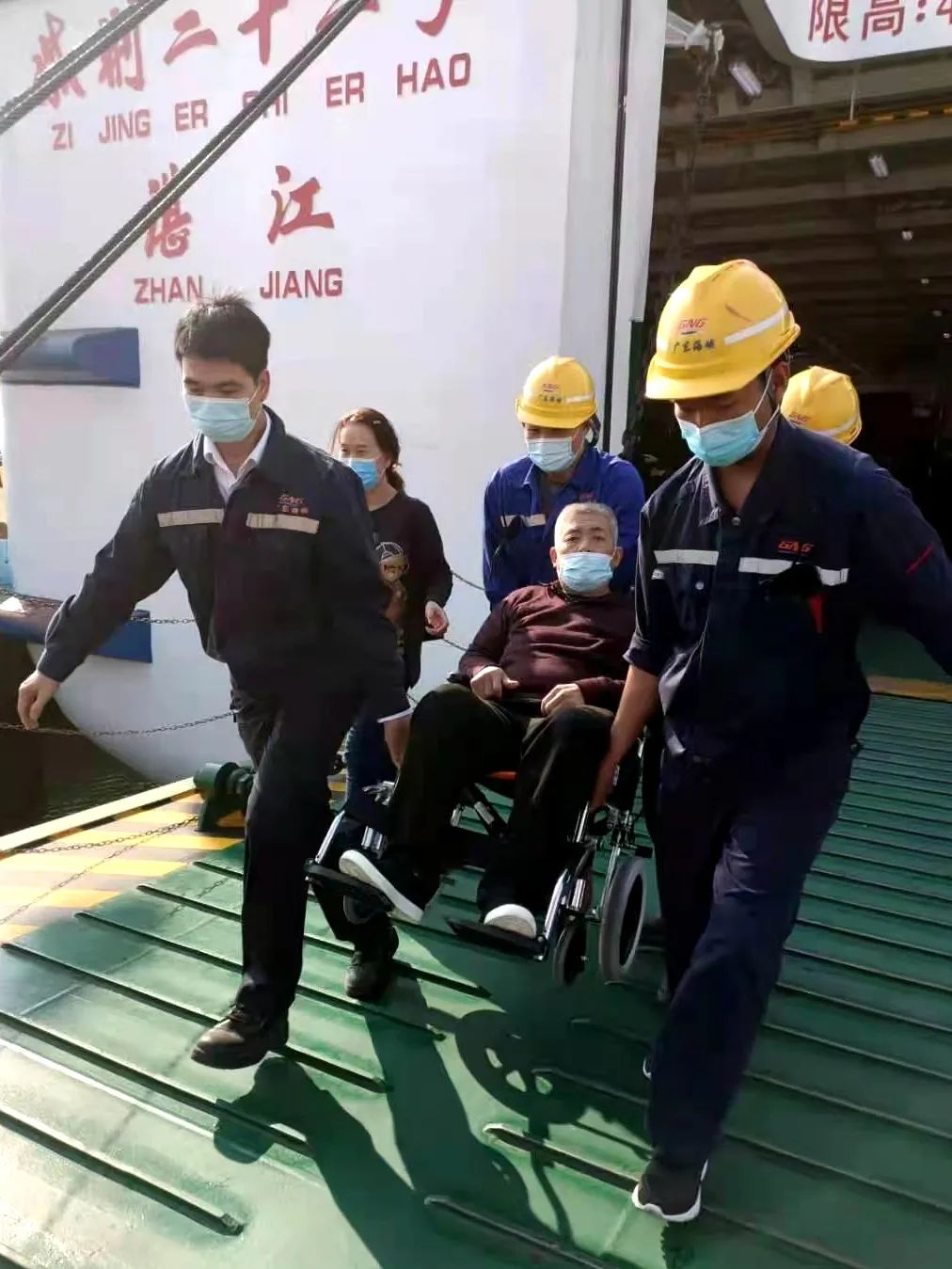 2月12日,在“紫荆二十二号”轮上,前往海南的旅客遇到难题:由于家里老人腿脚不灵活,需要坐轮椅,下船极为不便。就在犯难之际,船长符勋雄主动走了过来,了解情况后,考虑到甲板有减速带,推着轮椅走会颠簸得厉害,便立即组织船员抬起轮椅,将老人安全送到码头。得到帮助后,旅客喜出望外,对该船的服务给予高度评价。