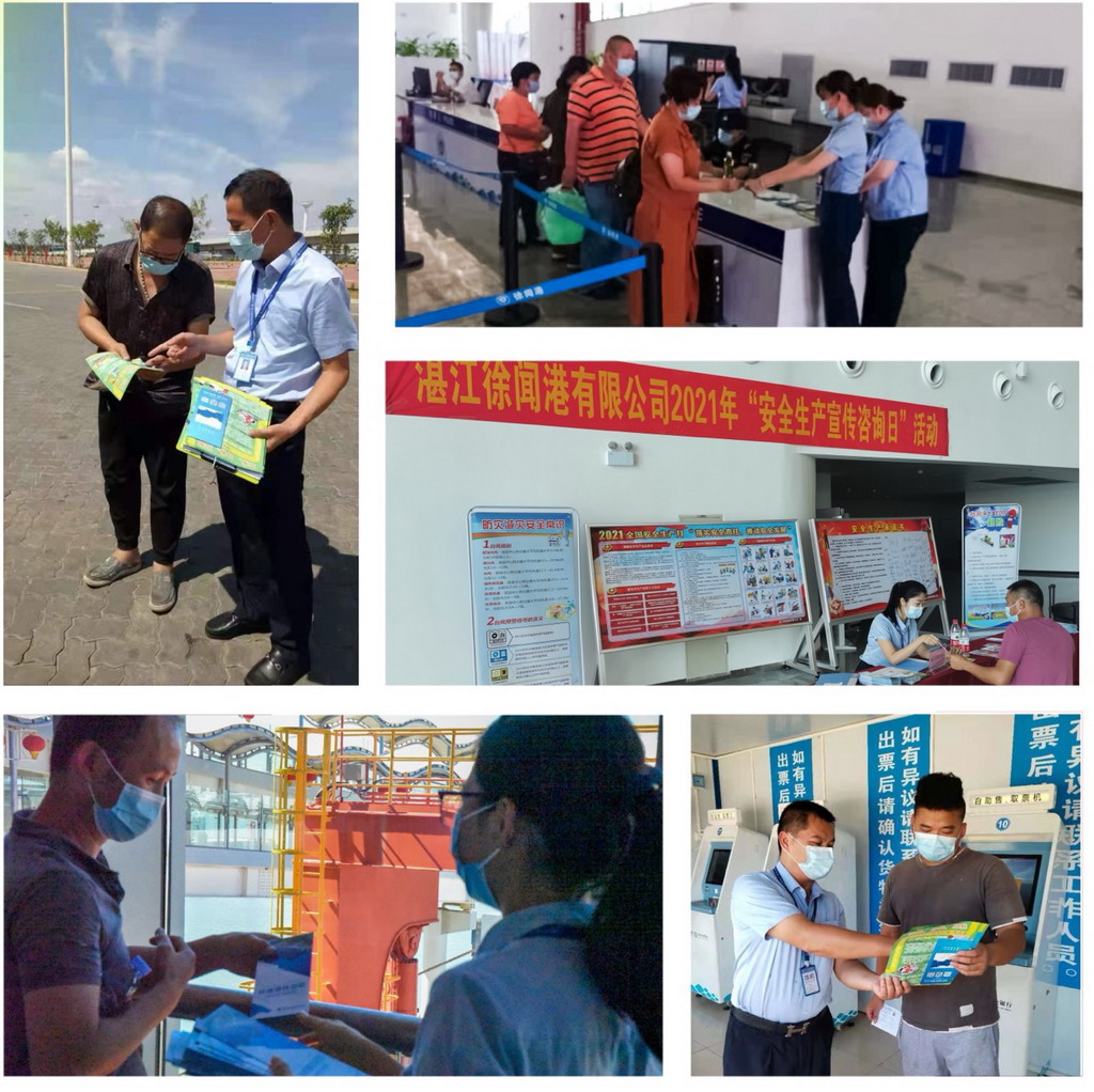 6月16日,徐闻港组织员工在“得月门”前开展2021年“安全宣传咨询日”暨“安全承诺签名”活动。陈德丰总经理带头在安全承诺展板上签下名字,各部门负责人及员工也纷纷紧随其后,郑重地签下自己名字。随后,工作人员分别在交通枢纽候船大厅、公安大棚,向司机、旅客发放了过海须知、火灾逃生、应急管理、防灾减灾及防疫知识等相关宣传资料,共发放折页手册500本,宣传单500张,并认真向旅客讲解宣传资料内容,获得一致好评。