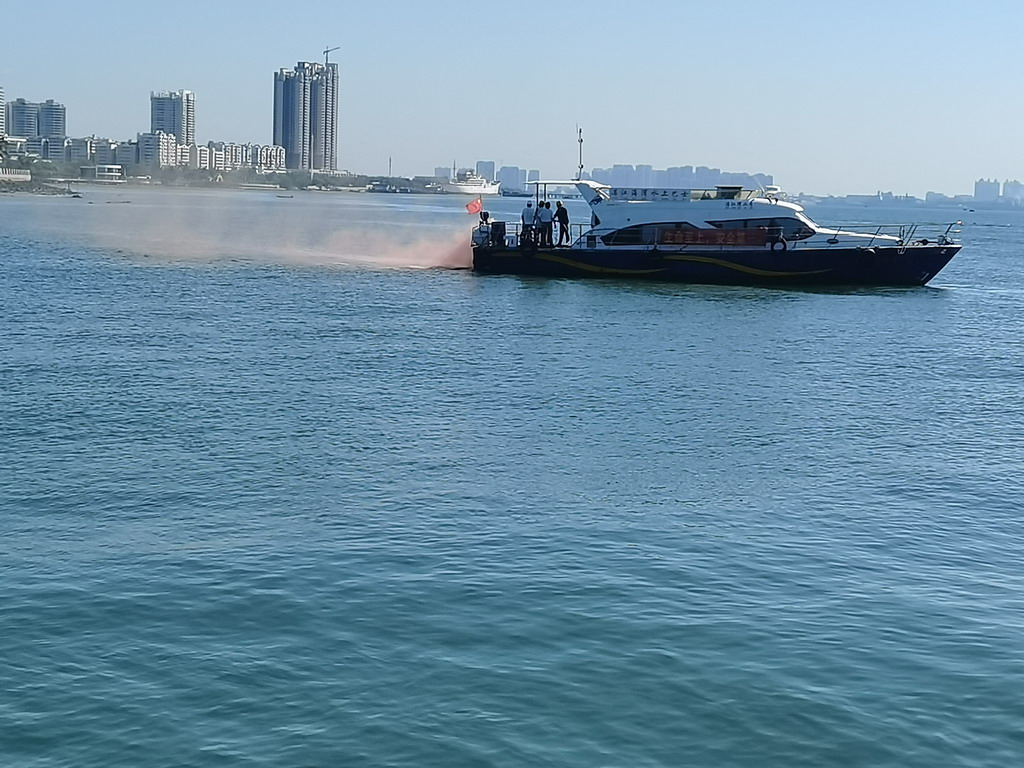 6月18日,水巴公司在海滨码头开展模拟船舶着火消防应急演练活动。此次演练共三艘船舶,30余人参加,并邀请了湛江海事局有关领导现场指导。演练模拟海滨码头到特呈岛的航行过程中,“湛江湾二号”客船突发船舱着火,形势危急。船长立即启用应急预案,组织船员开展船舶“灭火”。与此同时,接到“险情”报告的岸基相关部门迅速做出反应,指导船舶进行应急处理。最后,“大火”被扑灭,险情被排除。