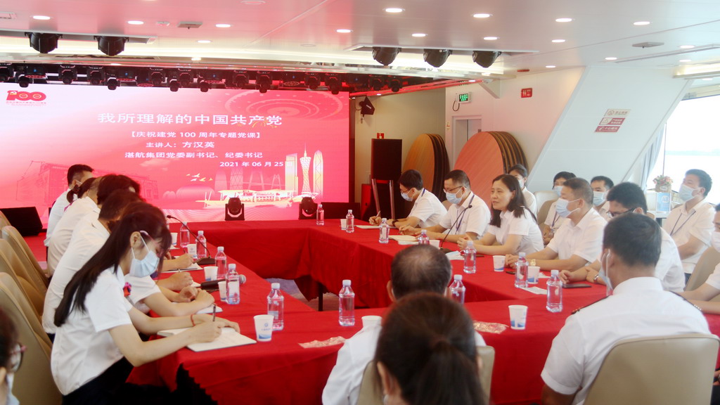 在“红嘴鸥六号”游船上,方汉英以《我所理解的中国共产党》为题,给红嘴鸥公司党员、员工上了一堂别开生面的专题党课。她以著名的作曲家吕其明的交响诗《红旗颂》为载体,结合歌曲旋律,有机融合“讲、视、听、动”,带领大家在磅礴之音中回顾了中国共产党的奋斗历程,用通俗易懂的语言深刻阐述了中国共产党是一个具有使命型的政党;是一个开放、包容型的政党;是一个学习型的政党;是一个敢于自我革命的政党;是一个人民群众拥戴、信任的政党。